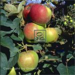| Frucht | kugelige bis flach kugelige Apfelfrucht; mittel bis großfrüchtig; weißgrünes Fleisch, süßsäuerlicher Geschmack mit schwachem Aroma |