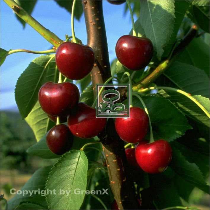 | Frucht | flach kugelige Steinfrucht; mittelgroße Knorpelkirsche; Fruchtfleisch fest, süß und aromatisch mit leichter Säure |