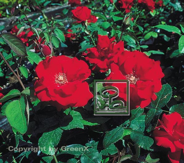 | Blüte: | leuchtend rot, rosettig, gefüllt, mittelgroß |