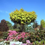 Wuchs: Klein-Baum, i.d.J. kugelig-rundkronig, im Alter flach kugelig (ohne Schnitt), breitkronig bis schirmförmig