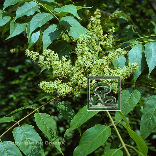 | Blüte: | grünlich, strahlig, in langen Rispen |