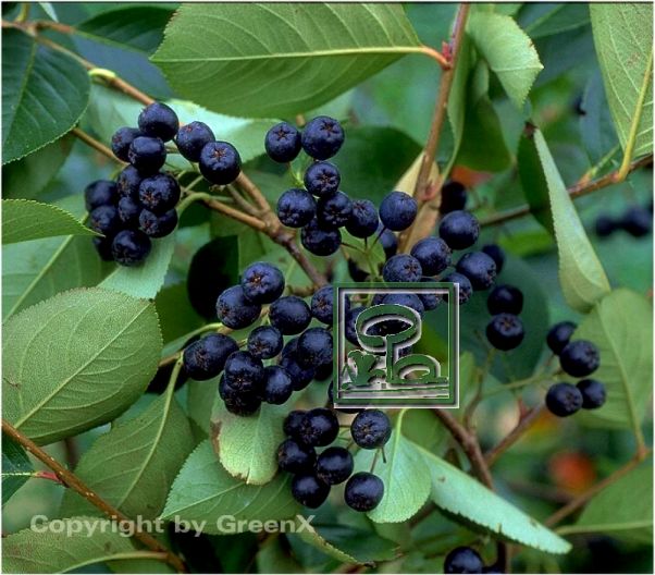 | Frucht | kugelige erbsengroße Apfelfrucht; 6-8 mm groß, glänzend; saftig, süß und herb, selbstfruchtbar, Fruchtgewicht 1 - 1,5 g, spät reifend |
