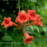 | Blüte: | orange, Saum leuchtend scharlachrot, Schlund innen gelb, langröhrig-glockig-trichterförmig, 5lappig |