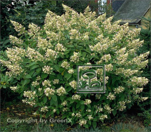 | Blüte: | cremeweiß, Knospen grünlich; im Abblühen rosa überhaucht, tellerförmig, in endständigen lockeren kegelförmigen Rispen |