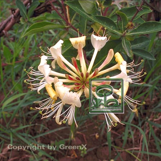 | Blüte: | gelblichweiß, außen oft rötlich überhaucht, 2lippig-langröhrig, 5zählig |