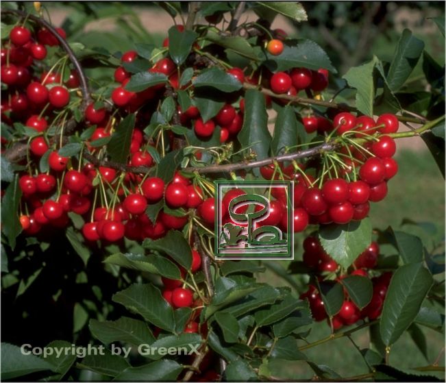 Pflege Reife mittelfrüh, 5. Kirschwoche, Anfang bis Mitte Juli; Ertrag hoch bis sehr hoch; schnittverträglich