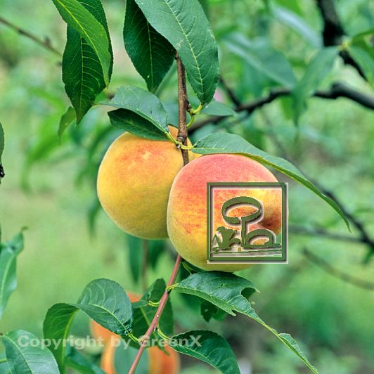 Frucht kugelig-ovale Steinfrucht; mittelgroßfrüchtig, dicht filzig behaart; Fruchtfleisch gelblichweiß, saftig, aromatisch; schlecht vom Stein lösend
