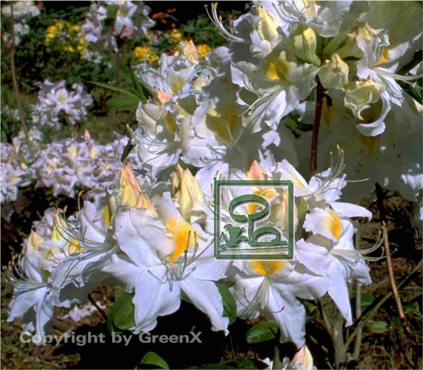 | Blüte: | weiß, Saum hellrosa überhaucht, goldgelb gezeichnet; Knospe hellrosa, breit trichterförmig, 5-8lappig, Saum fein gewellt, mittelspät |