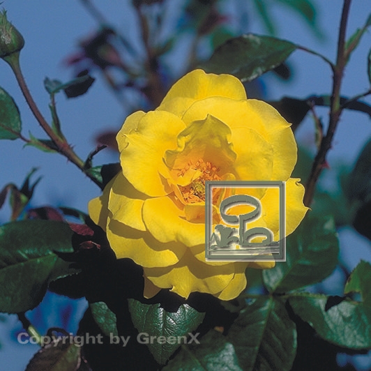 | Blüte: | leuchtend goldgelb, rosettig, gefüllt, mittelgroß |