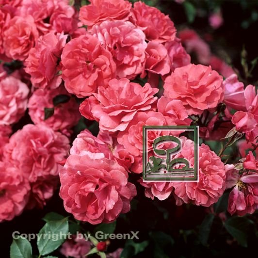 | Blüte: | leuchtend lachsrosa, rosettig bis schalenförmig, halbgefüllt, mittelgroß |