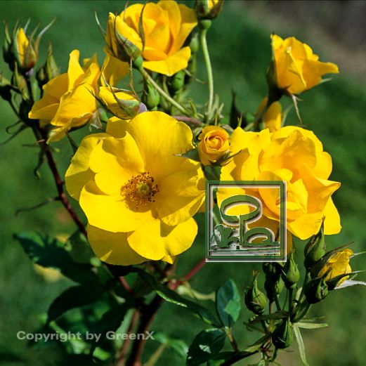 | Blüte: | goldgelb, rosettig bis schalenförmig, halbgefüllt, mittelgroß |