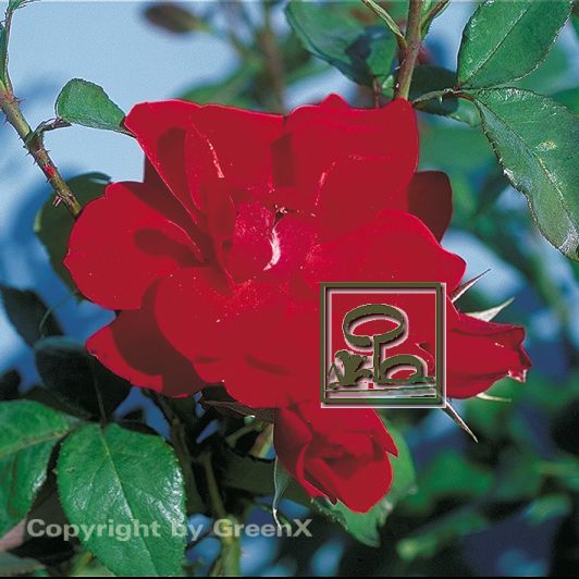 | Blüte: | leuchtend dunkelrot, rosettig, gefüllt, mittelgroß |