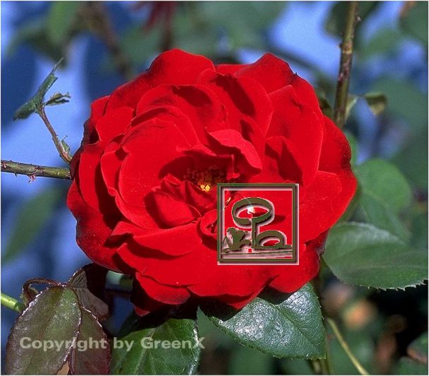 | Blüte: | leuchtend feuerrot, rosettig bis schalenförmig, halbgefüllt, mittelgroß |