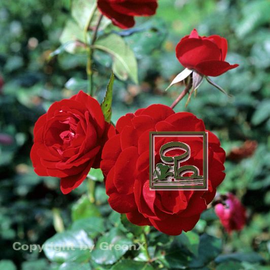 Blüte: leuchtend blutrot bis dunkelrot, im Abblühen farbbeständig, rosettig, gefüllt, mittelgroß