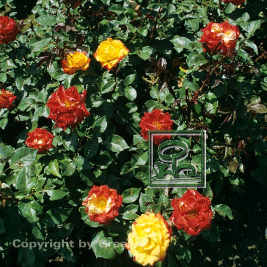 | Blüte: | goldgelb, im Abblühen von außen her leuchtend rot, rosettig, gefüllt, mittelgroß |
