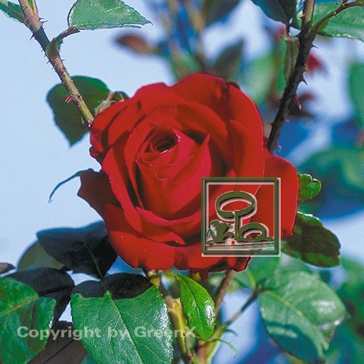 Blüte: dunkelrot, rosettig, dicht gefüllt, großblütig