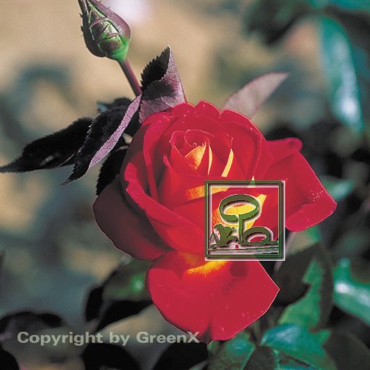 Blüte: leuchtend rot, us. gelb, rosettig, gefüllt, großblütig