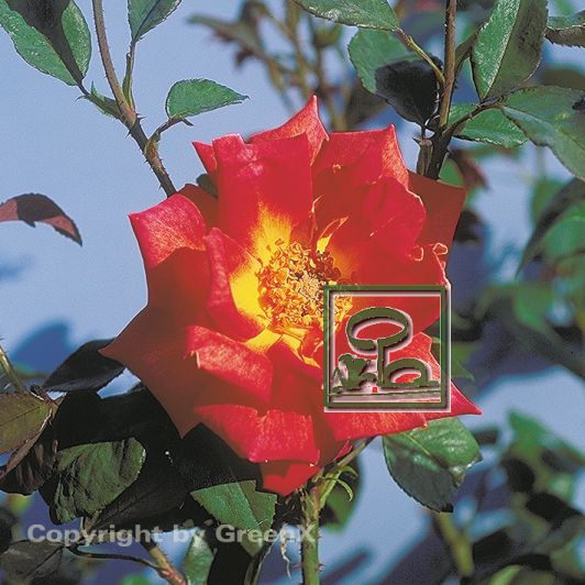 | Blüte: | innen kupferrot, außen goldgelb, rosettig, dicht gefüllt, großblütig |