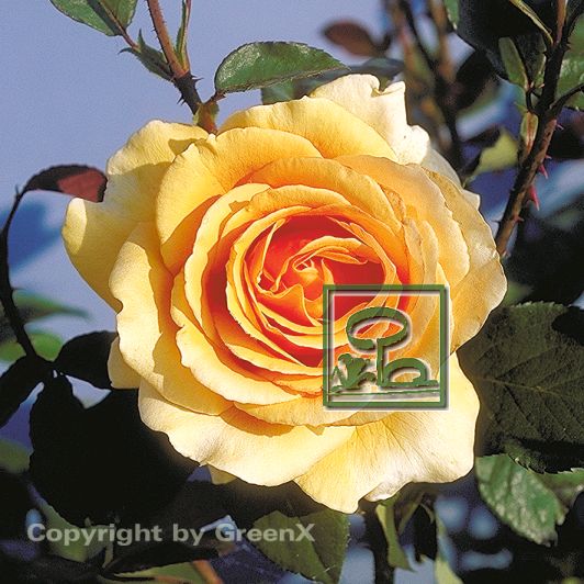 | Blüte: | kupfergelb, rosettig, dicht gefüllt, großblütig |