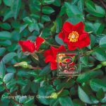 Blüte: leuchtend blutrot, Staubgefäße gelb, schalenförmig, einfach, rel. klein
