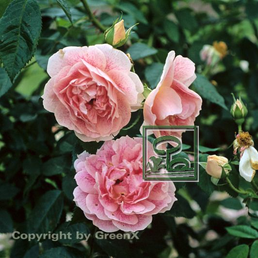 | Blüte: | hellrosa, Knospe teilweise rot geflammt, rosettig, halbgefüllt, mittelgroß |