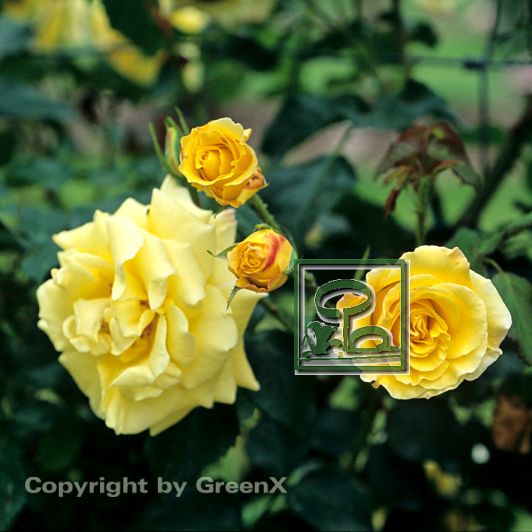 | Blüte: | hellgelb, orange überhaucht; Knospe gelb, rosettig, gefüllt, mittelgroß |