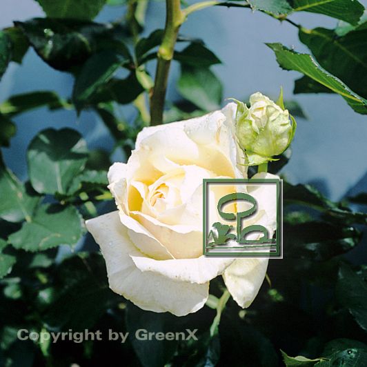| Blüte: | reinweiß, rosettig, gefüllt, großblütig, edelrosenartig |