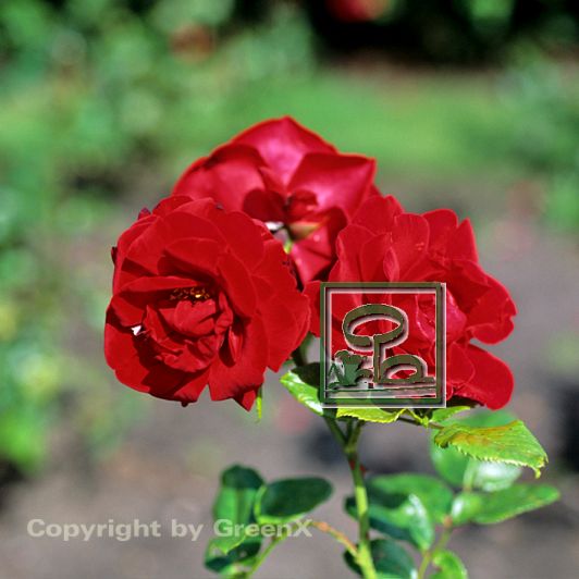 Blüte: leuchtend blutrot, rosettig, gefüllt, großblütig