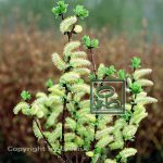 Blüte: hellgelb, vor dem Aufblühen silbrigweiß, fast filzig, walzenförmige sehr dichte Kätzchen