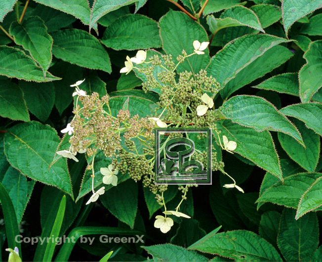 | Blüte: | cremeweiß, strahlig, in flachen breiten Schirmrispen |
