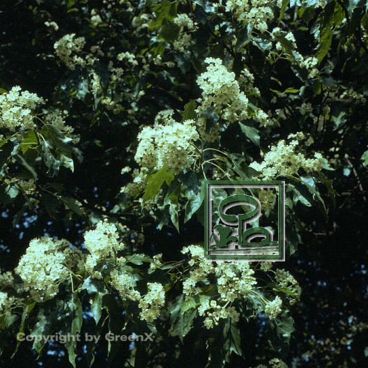 Blüte: weiß bis cremeweiß, strahlig, in filzig behaarten Schirmrispen