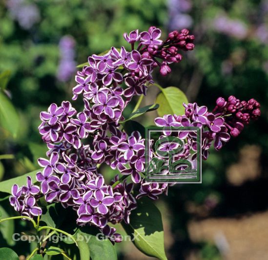 Blüte: purpurrosarot, breit silbrigweiß gerandet, stieltellerförmig, in lockeren schmal kegelförmigen Rispen