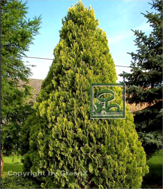 | Wuchs: | Klein-Baum, Konifere, schmal kegelförmig, später breit säulenförmig |