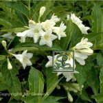 Blüte: leuchtend weiß, im Abblühen weiß bleibend, trichterförmig, 5zählig, in Trugdolden